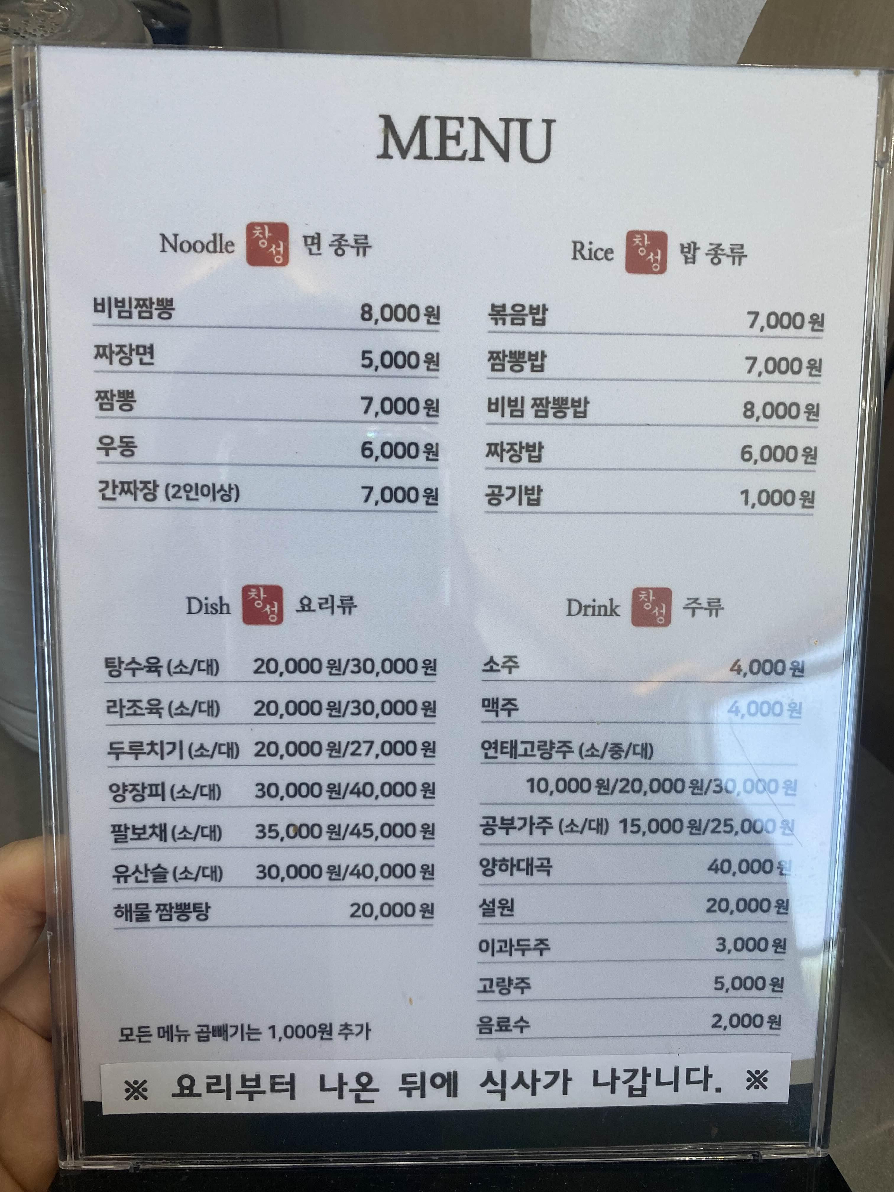 창성 메뉴입니다.